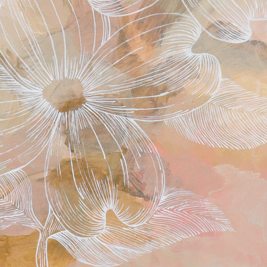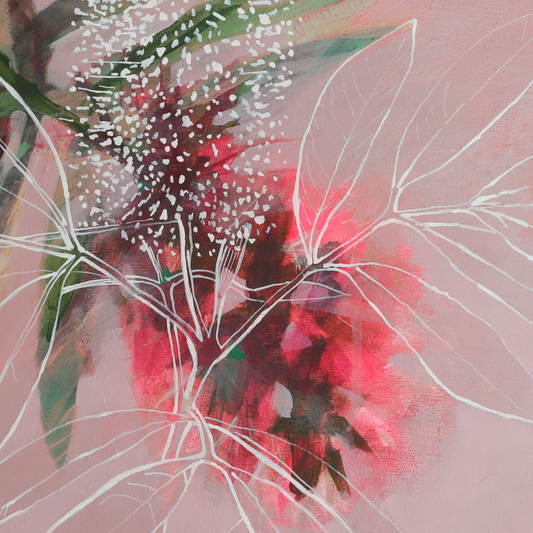 The Enchanted Garden Paintings, are abstract paintings that explore feeling and mood. Each piece is overlaid with graphic elements taken from antique botanical illustrations. Inspiration comes from flowers, seed pods, textures and colours from my everyday environment. Click on the thumbnail below for more images and information about each artwork.